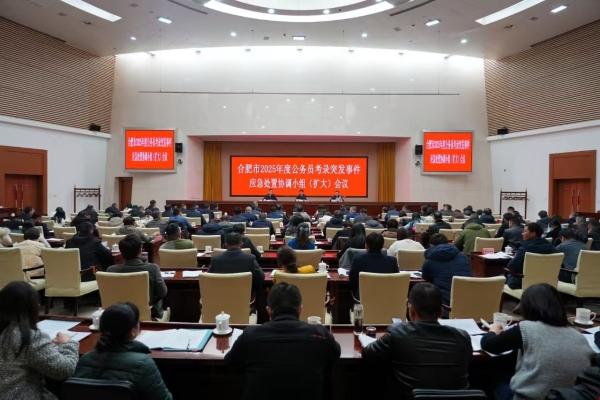 合肥市2025年度考試錄用公務員和招錄選調生筆試將于3月15日、16日舉行。為確保考試工作安全平穩有序推進,3月6日下午,合肥市召開會議,對2025年度考試錄用公務員和招錄選調生工作進行部署安排,市委常委、組織部部長楊志斌出席會議并講話。